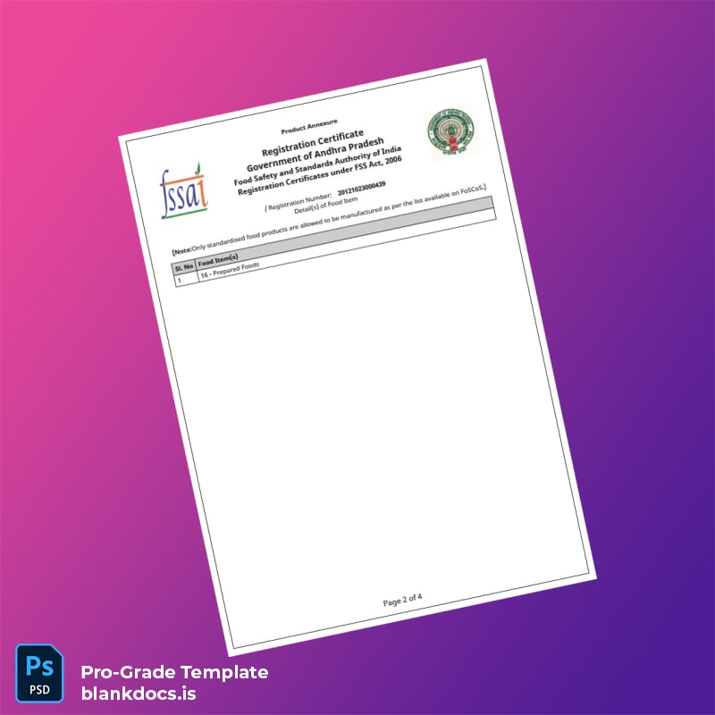 Be the first to review “Blank Andhra Pradesh Food Safety and Standards Authority of India Registration Certificate Template (Word/PDF) 4 page”