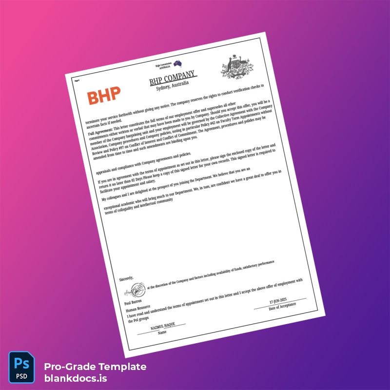 Streamline Your Employment Verification Process with Australia BHP Company Template