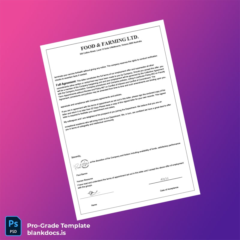 Unlock Seamless Employment Verification with Our Australia Food Farming LTD Template