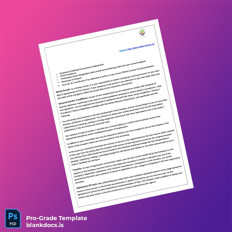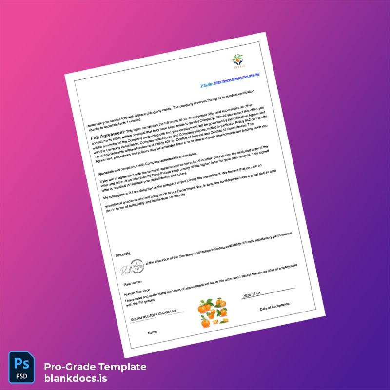 Streamline Your Employment Verification Process with the Australia Orange Botanic Gardens Template