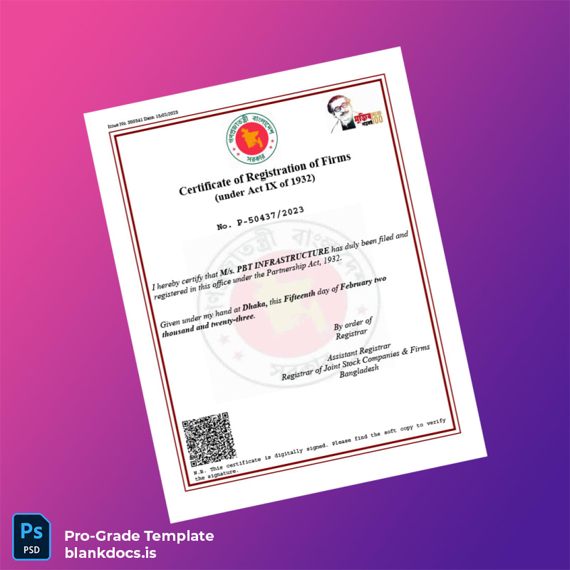 Streamline Your Business Registration with the Bangladesh Registrar of Joint Stock Companies Firms Certificate Template