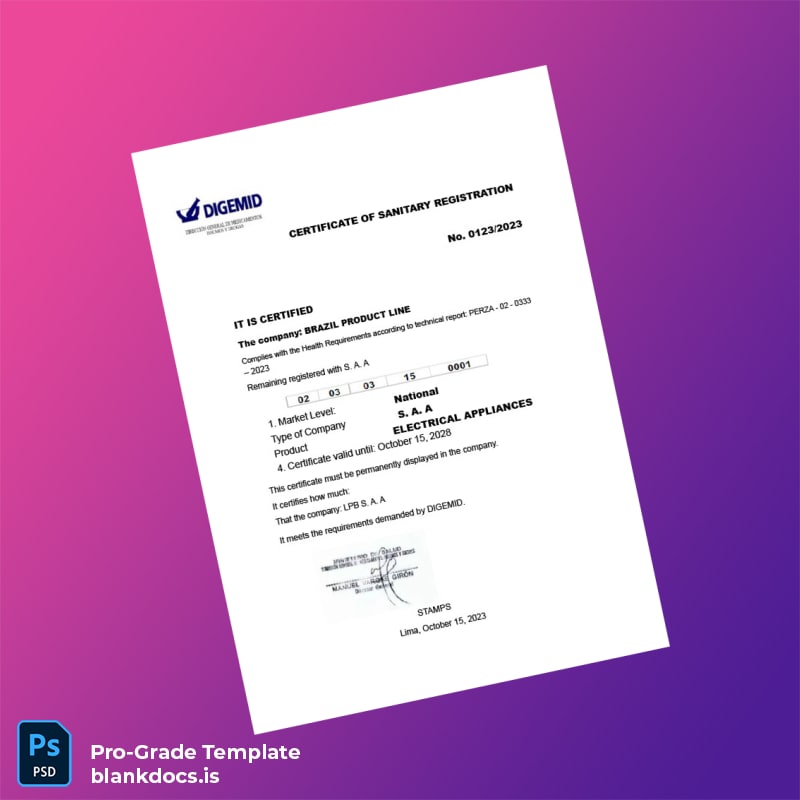 Streamline Your Business Compliance with the Blank Brazil Ministry of Health Sanitary Registration Certificate Word and PDF Template
