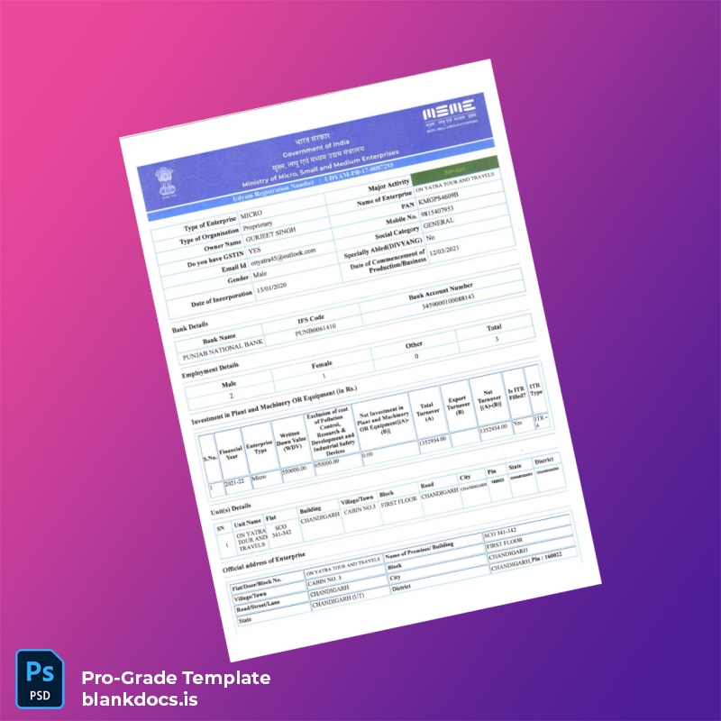 This template is ideal for small business owners, legal consultants, and administrative professionals who require a reliable, editable registration certificate. Particularly useful for those who need quick reissuance due to lost documents, theft, or expiration. It addresses the critical challenges of time-sensitive documentation and professional presentation, helping prevent business disruptions.