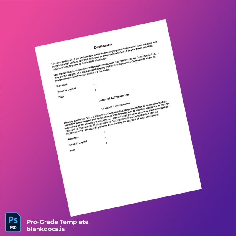 Ensure seamless and professional proof of employment documentation with the Corrival Corporate Consultants Ltd Employment Verification Letter Template, available in both Word and PDF formats. This versatile, blank template empowers HR professionals, corporate consultants, and administrative staff to accurately and efficiently provide employment verification letters tailored to any organization’s needs.