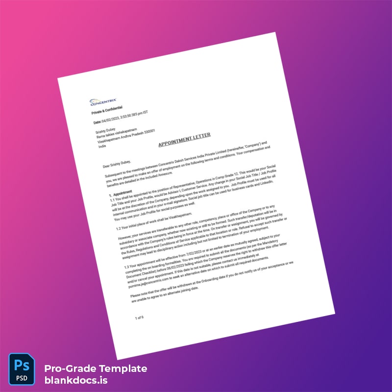 Don’t let administrative hurdles slow you down. Utilize the India Concentrix Daksh Services India Private Limited Appointment Letter Template to create accurate, professional employment documents swiftly and effortlessly. Secure your copy now and empower your HR operations with a reliable, editable template designed for global professionals.