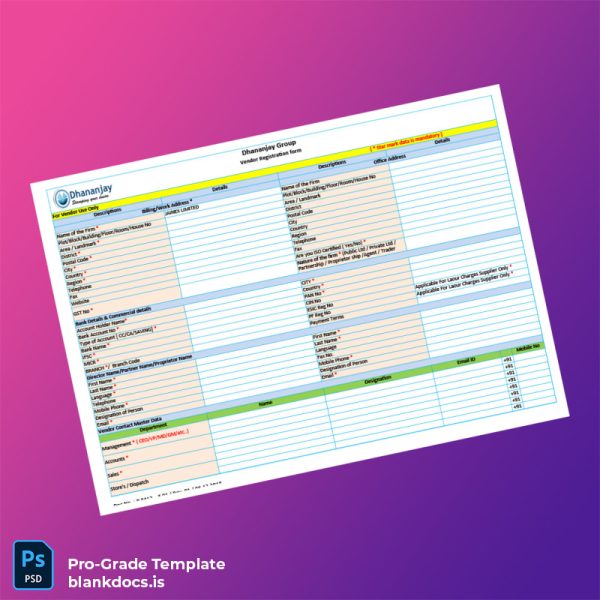 Streamline Your Business Registration Process with the India Dhananjay Group Vendor Registration Form Template