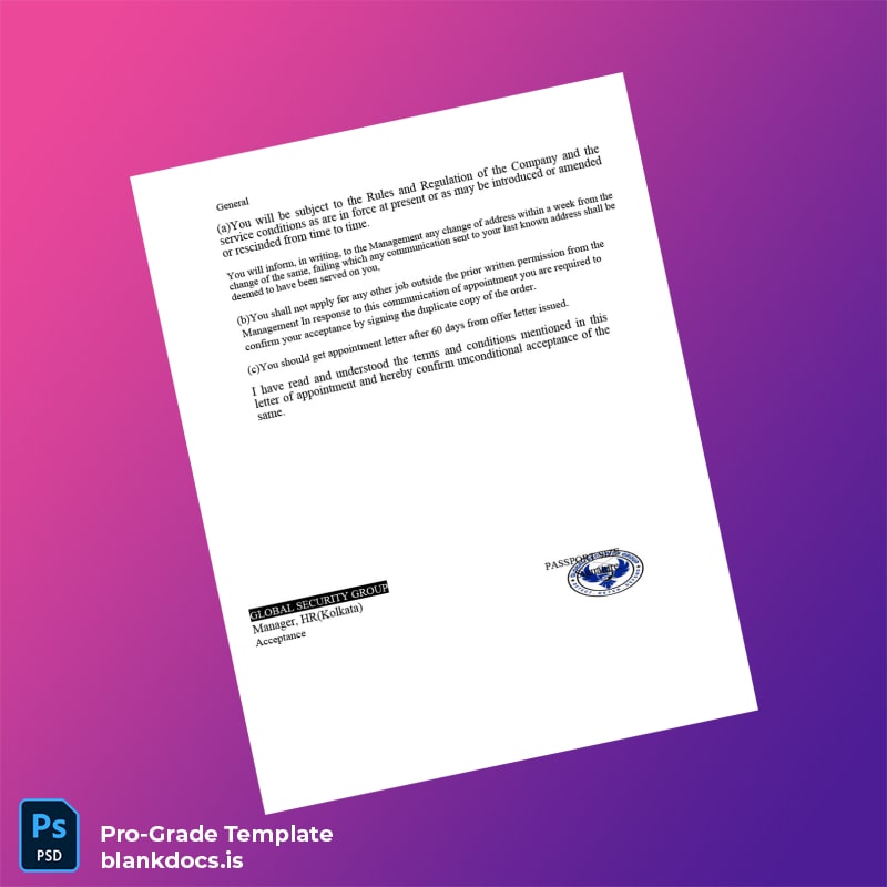 Be the first to review “Blank India Global Security Group Employment Verification Letter Template (Word/PDF) 5 page”