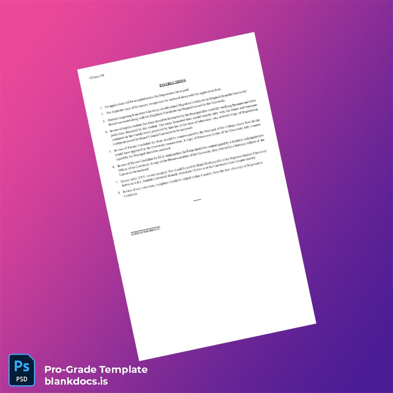Be the first to review “Blank India Guwahati University Registration Certificate Template (Word/PDF) 2 page”