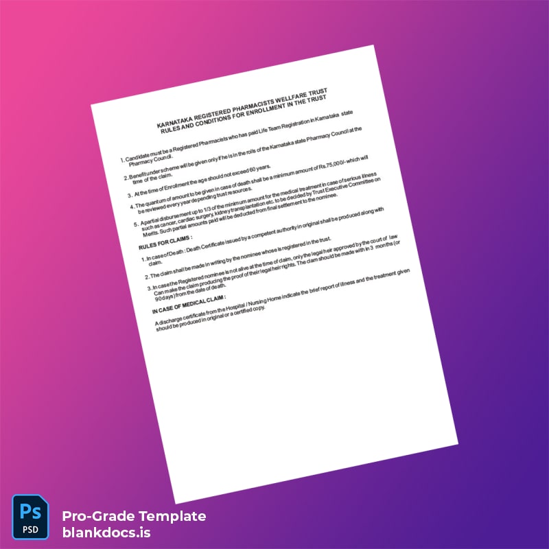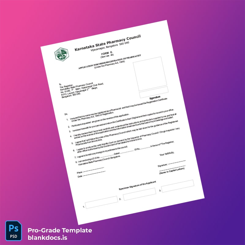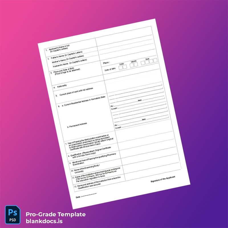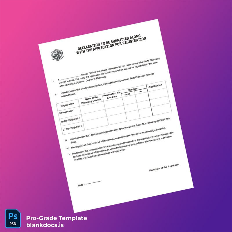 Ensure your pharmacy registration documents always look professional and meet official requirements. Download the Blank India Karnataka Pharmacy Registration Certificate Word and PDF Template now and customize your certificate swiftly to keep your business compliant and professional. Act now to experience hassle-free editing and instant access to your essential pharmacy registration certificate.