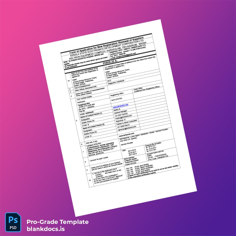 - A template crafted specifically to meet the requirements of Kerala State Electronics Development Corporation Ltd vendor registration.