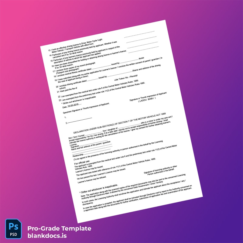 Simplify Your Licensing Process with the India Licensing Authority Learner’s Licence Application Template