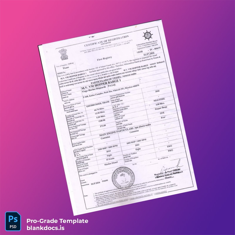 This certificate template is ideal for newly registered maritime companies, legal professionals handling corporate compliance, and administrative staff who manage timely submissions of registration documents. Whether you’ve lost your original certificate, require a replacement due to expiration, or need to generate multiple forms rapidly, this template mitigates common frustrations of re-application delays and formatting errors.