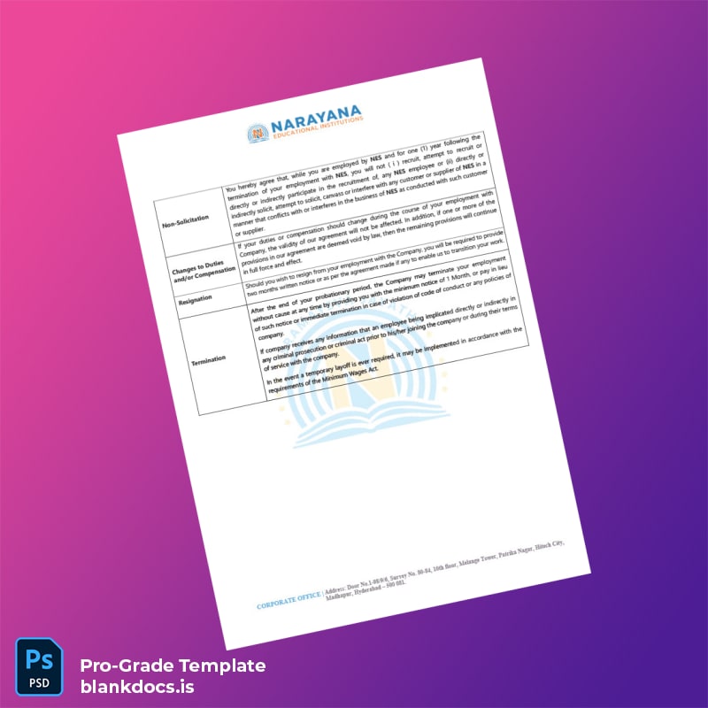 India Narayana Educational Society Appointment Letter Template (Word & PDF)
