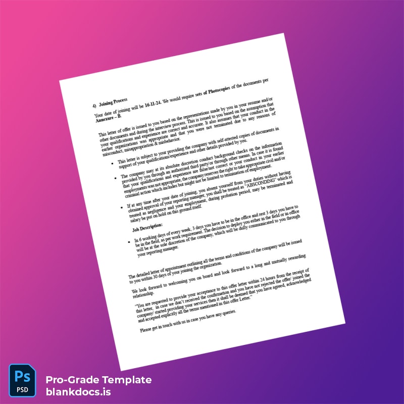 - Easily modifiable template fields including personal and company data for precise job confirmation letters