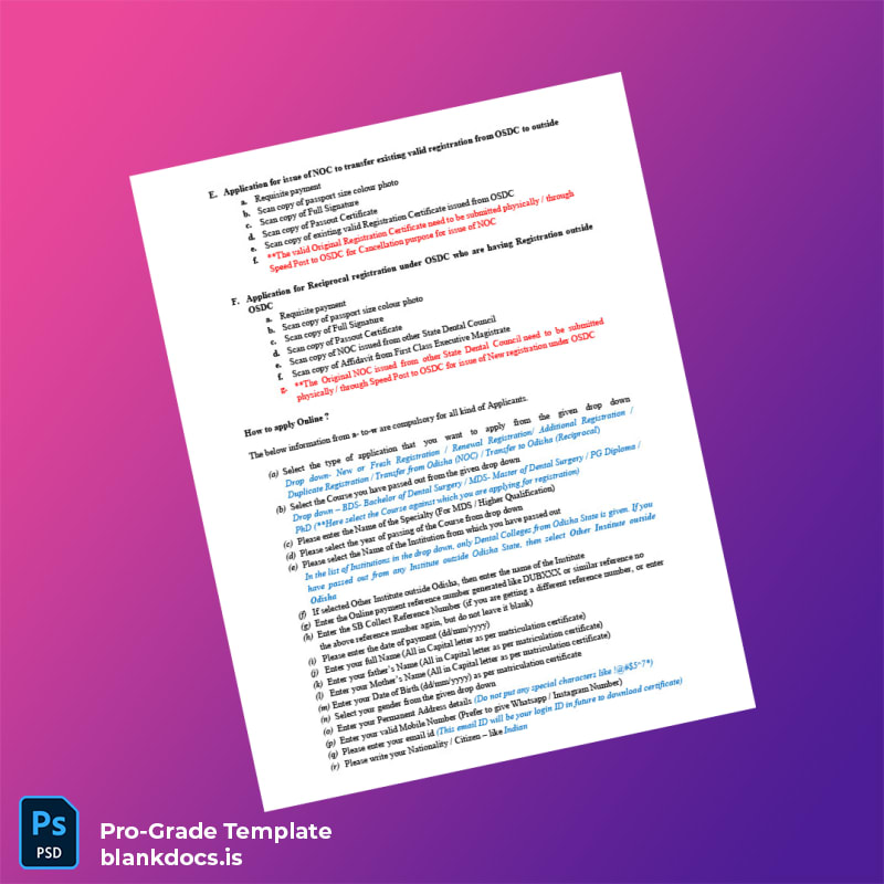Streamline Your Official Documentation with the India Odisha State Dental Council Registration Certificate Template