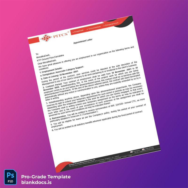 Blank India PITCS Employment Verification Letter Template (Word/PDF) 7 page