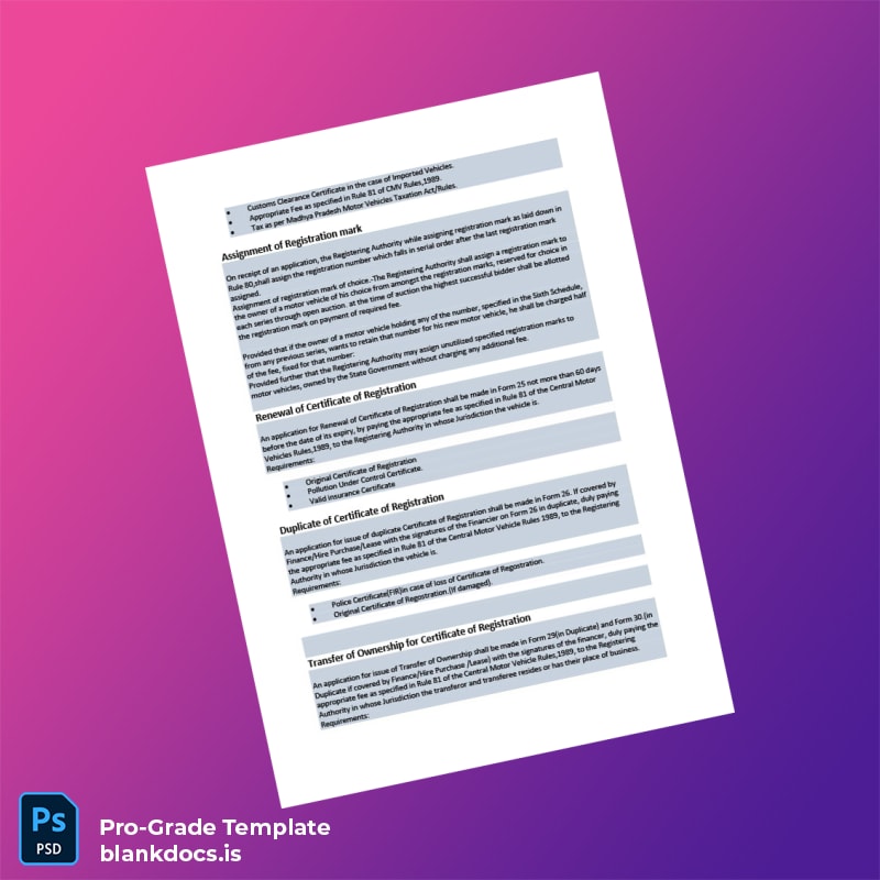 The India Registering Authority Certificate of Registration Template (Word & PDF) is an essential resource for professionals needing a customizable and official-looking document. This blank template allows you to enter all necessary details, making it the perfect tool for those who require a fast and reliable solution for business registration documentation.