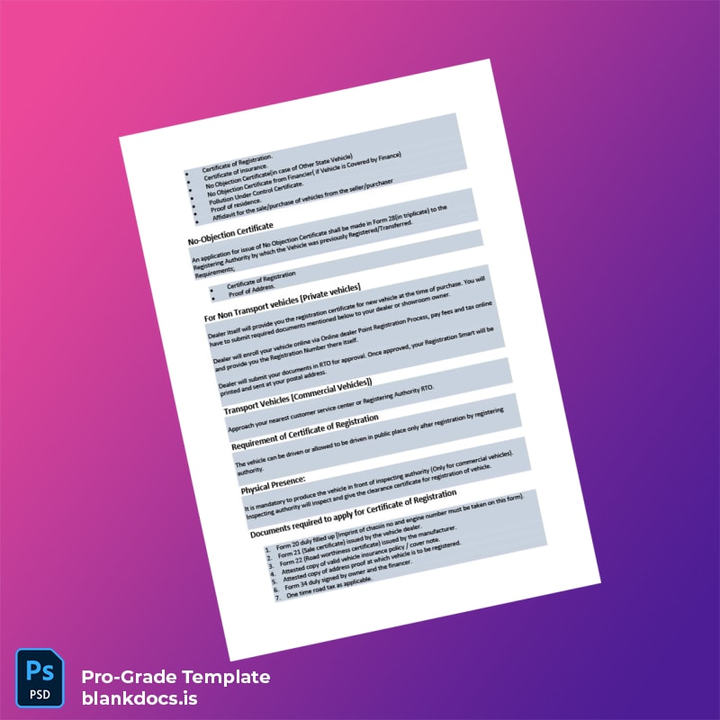 Don’t let missing or outdated certificates slow down your business operations. With the India Registering Authority Certificate of Registration Template, you have a reliable, editable, and official-looking document at your fingertips. Purchase and download your editable registration certificate now and experience the convenience and professionalism it brings.