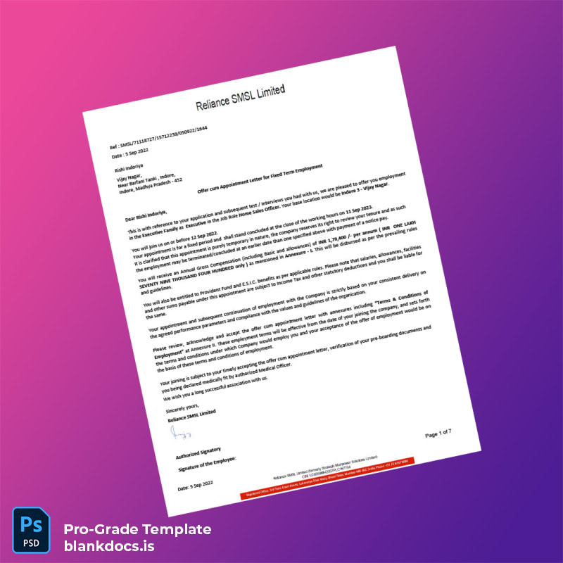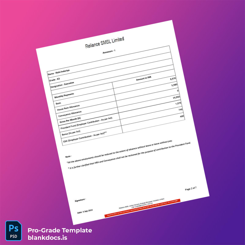 Streamline Your Employment Verification with the India Reliance SMSL Limited Salary Certificate Template