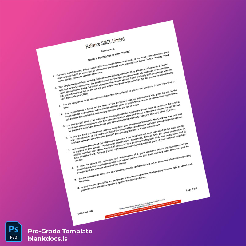 Effortlessly confirm employment details with the India Reliance SMSL Limited Salary Certificate Template (Word & PDF), designed for professionals who need a dependable and customizable blank template. This digital solution offers convenience and flexibility, enabling you to create an accurate proof of employment letter that meets your specific needs.