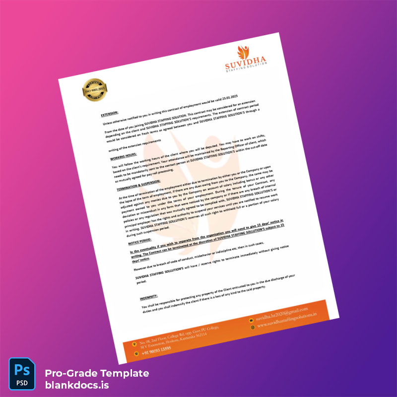 Don’t let verification tasks slow down your workflow. Upgrade your document toolkit with the India Suvidha Employment Verification Letter Template and experience the convenience of a ready-to-use, customizable letter template. Provide employees and stakeholders with timely, accurate employment confirmations and maintain your professional reputation effortlessly.