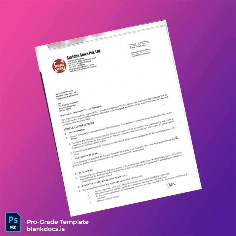 Blank India Suvidha Sewa Pvt Ltd Employment Verification Letter Template (Word/PDF) 6 page