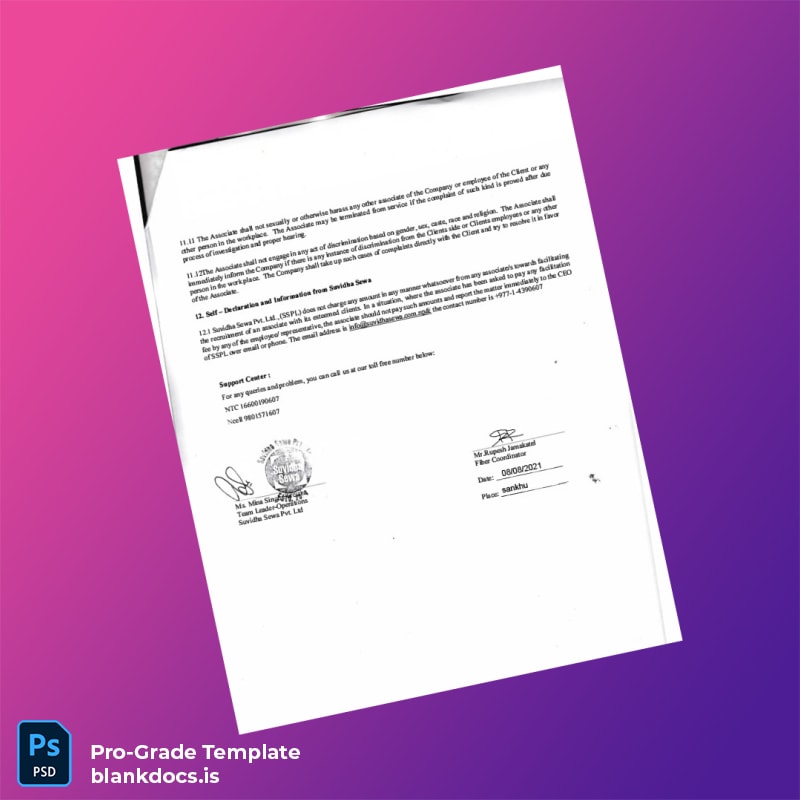 Be the first to review “Blank India Suvidha Sewa Pvt Ltd Employment Verification Letter Template (Word/PDF) 6 page”
