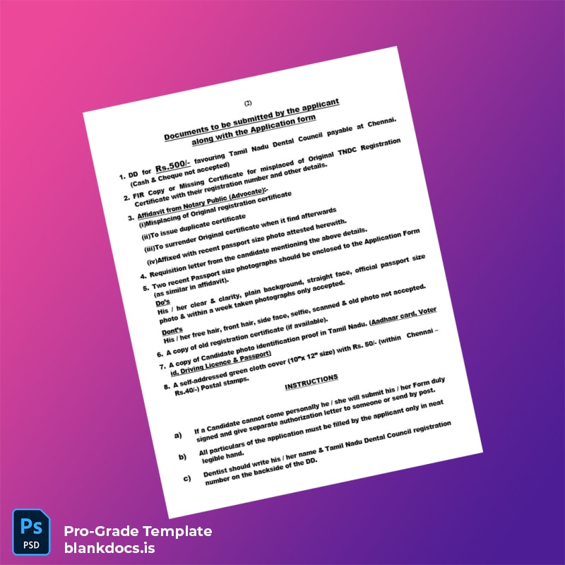 Don’t let lost or outdated certificates hinder your practice. Secure your editable registration certificate today and benefit from a user-friendly design tailored for India Tamil Nadu dental professionals. Download now to restore your credentials with ease and professionalism.
