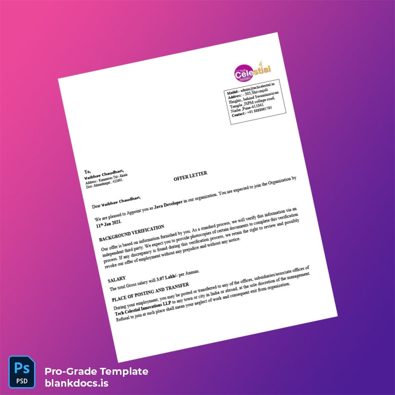 Stop wasting time struggling with generic or outdated templates. Invest in the India Tech Celestial Innovations LLP Employment Verification Letter Template (Word & PDF) to deliver precise, prompt employment verification documents. Ensure your professional communication exudes confidence and accuracy—download this customizable blank template now to meet your verification needs efficiently and effectively.
