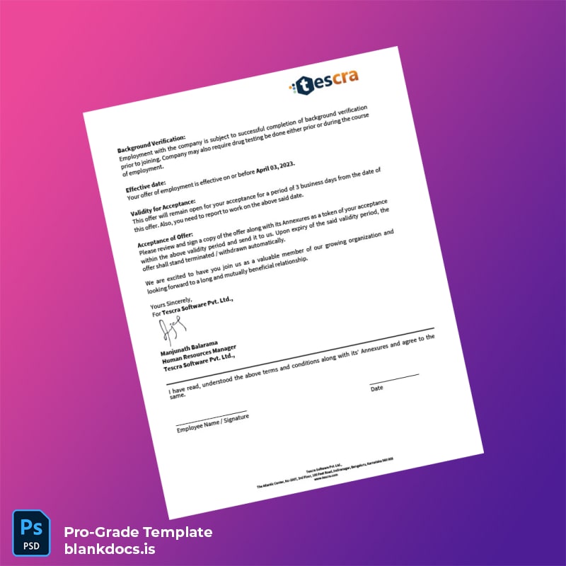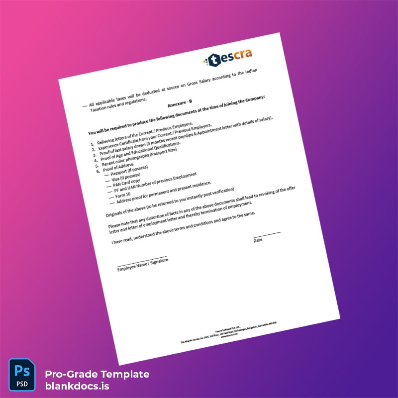 Streamline Your Employment Verification Process with the India Tescra Offer Letter Template