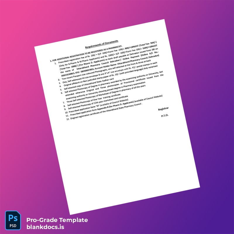 Managing official documentation for pharmacy council registration can be a time-consuming and tedious task. The India Uttarakhand Pharmacy Council Registration Certificate Template (Word & PDF) is designed specifically for professionals who need a fast, reliable, and easily editable solution to create authentic-looking registration certificates. Whether you are a pharmacist, a regulatory consultant, or managing a pharmacy business, this template offers you full control over every detail.