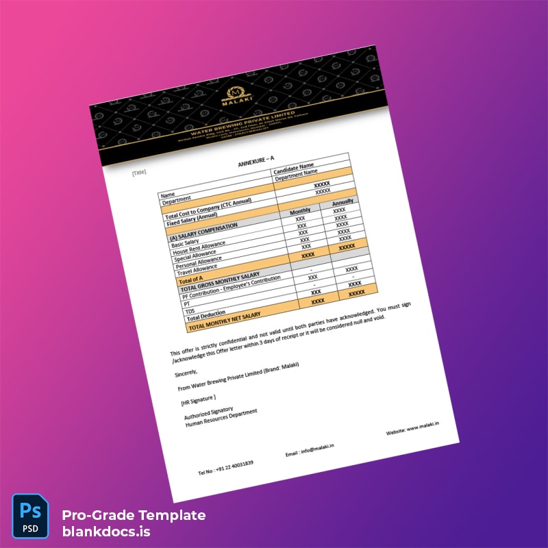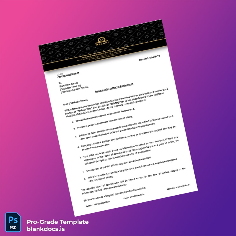 The India Water Brewing Private Limited Employment Verification Letter Template (Word & PDF) offers a reliable and versatile solution for HR professionals and administrative staff tasked with verifying employment. This editable document is designed to simplify the creation of official employment confirmation letters, making it easy to provide accurate and timely proof of employment.