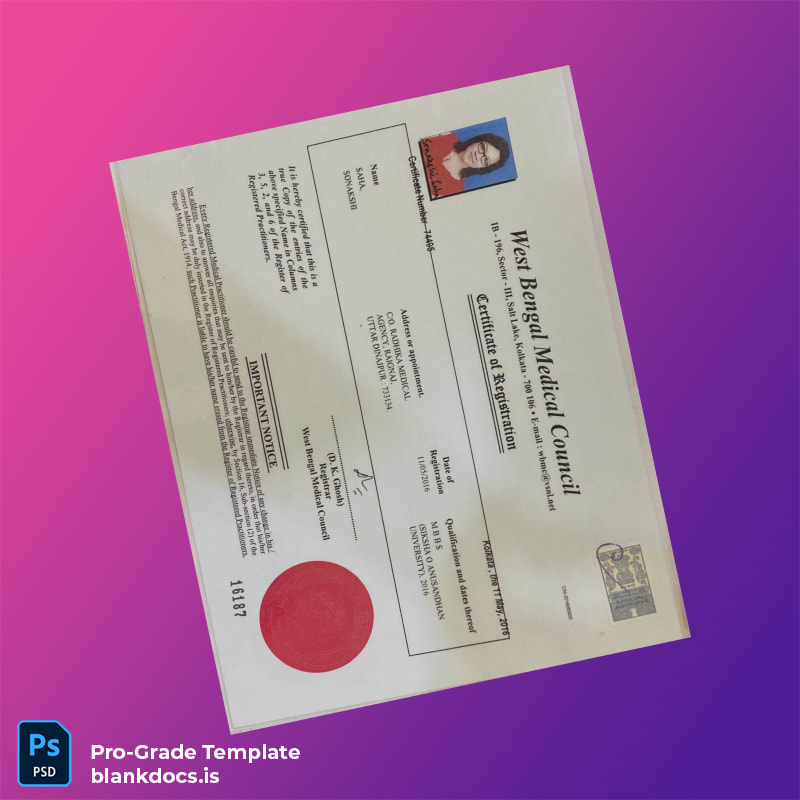 Streamline Your Medical Registration with the India West Bengal Medical Council Registration Certificate Template
