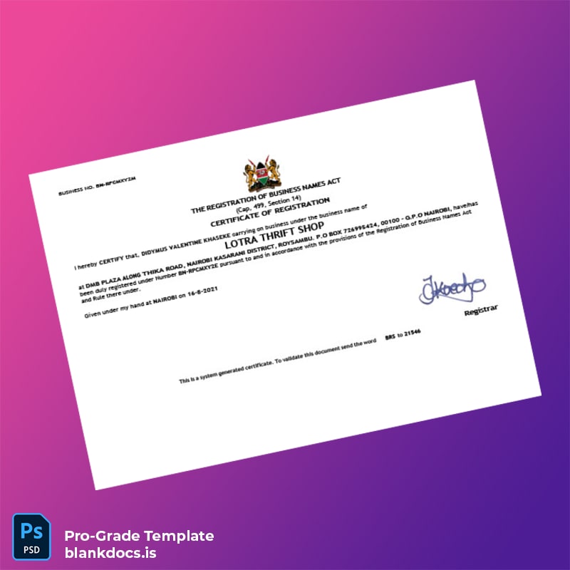 Download the Blank Kenya Ministry of Commerce Business Registration Certificate Word and PDF Template today and ensure your company registration records are always up-to-date and professionally presented.