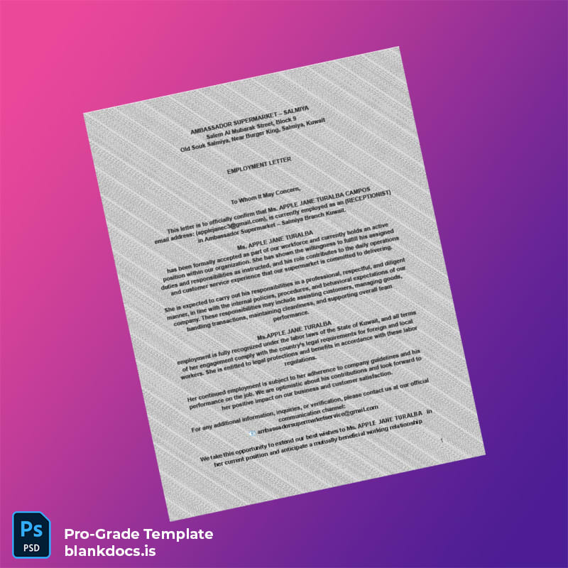 Streamline Your Employment Verification Process with the Kuwait Ambassador Supermarket Employment Verification Letter Template
