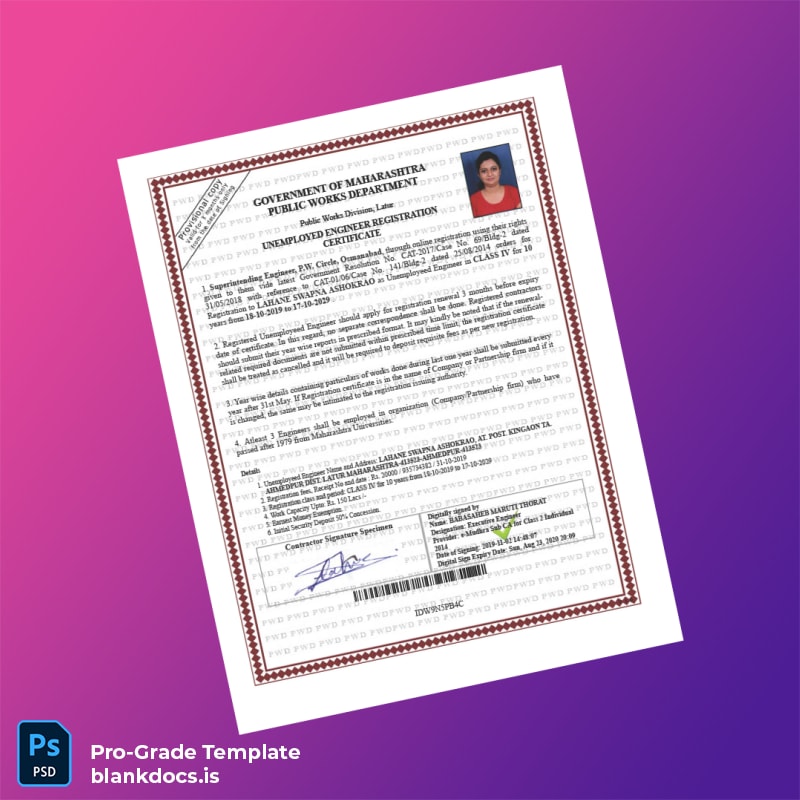 Streamline Your Registration Process with the Maharashtra Public Works Department Unemployed Engineer Registration Certificate Template