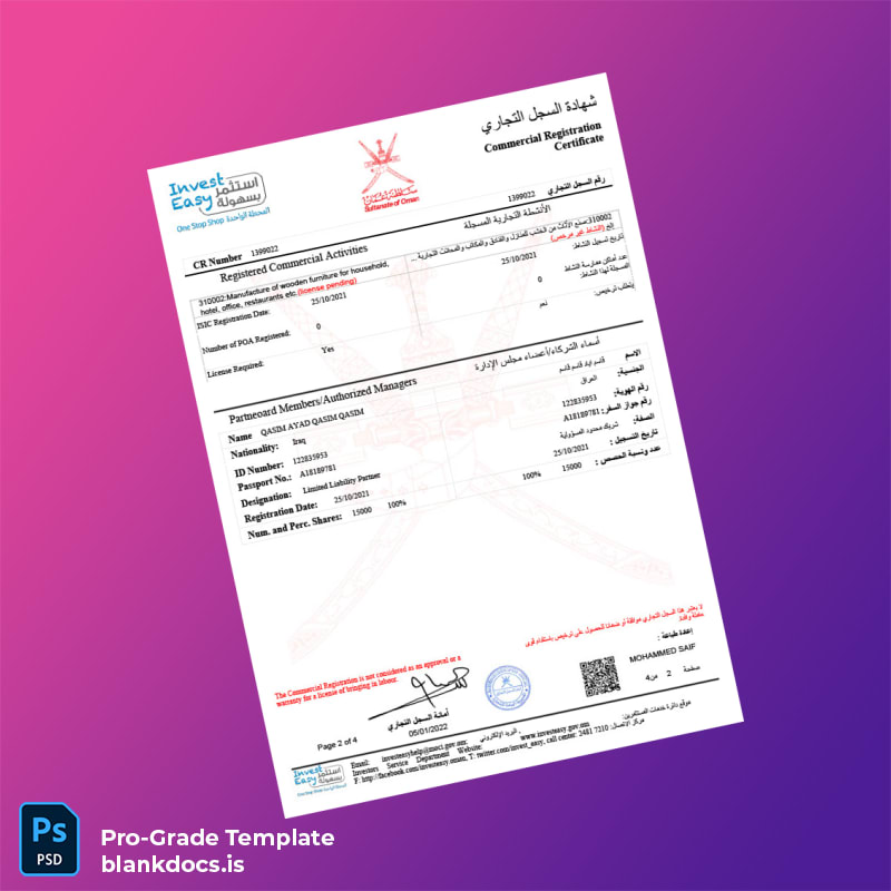Be the first to review “Blank Oman Commercial Registration Certificate Template (Word/PDF) 4 page”