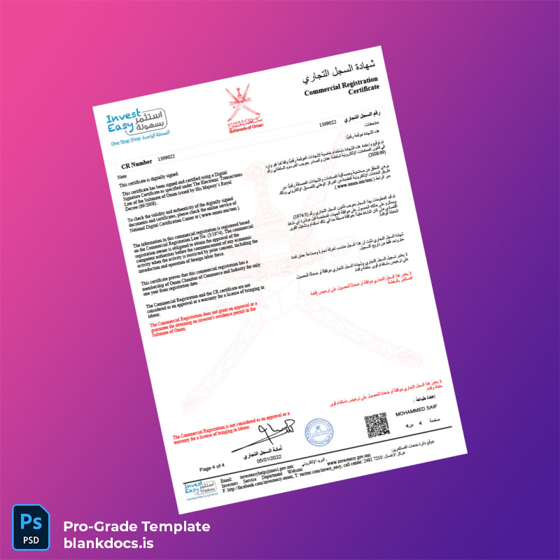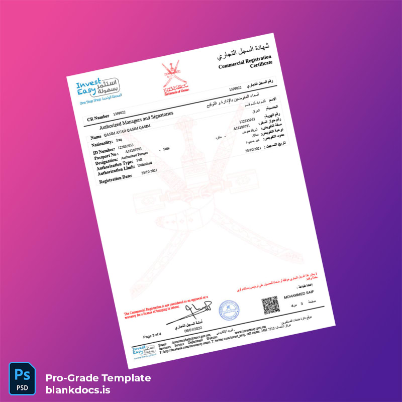 Blank Oman Commercial Registration Certificate Template (Word/PDF) 4 page