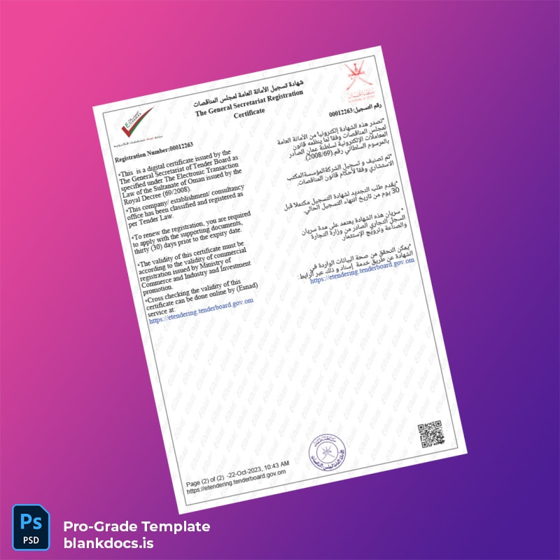 Streamline Your Business Registration with the Oman General Secretariat Registration Certificate Template
