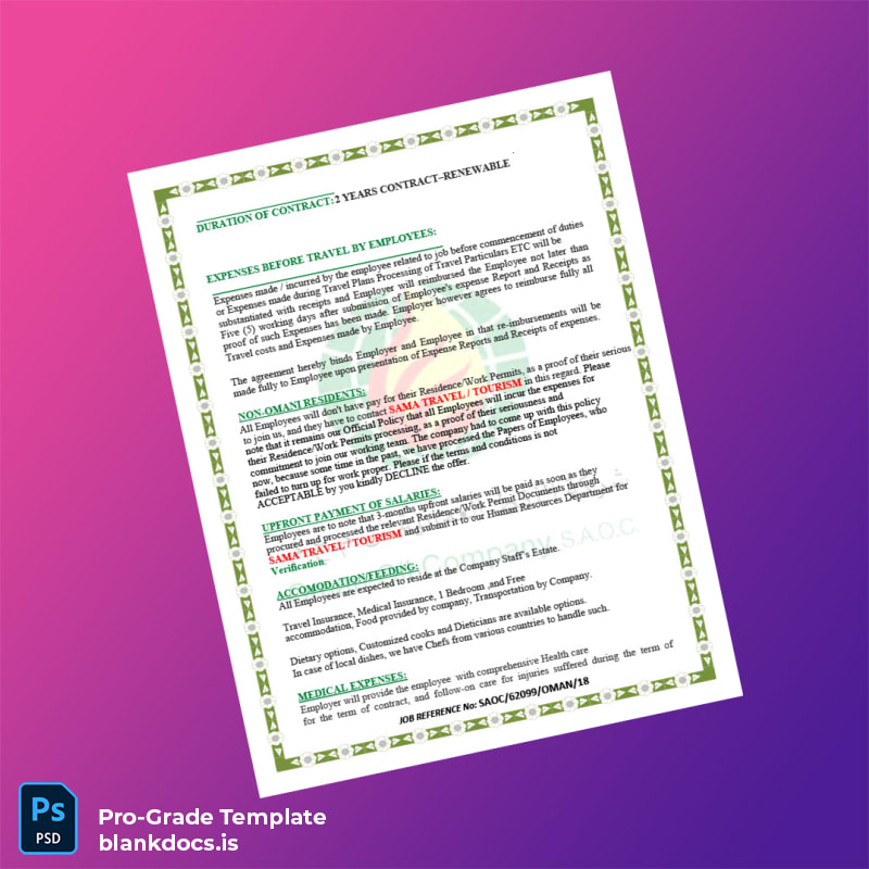 Efficiently certify employment and salary details with our Blank Oman Oil Company Salary Certificate Word and PDF Template, designed for professionals who require a versatile and fully customizable document. Whether you’re an HR manager confirming employment status or an employee needing proof of salary for loans or visa applications, this template offers a reliable solution tailored to your needs.