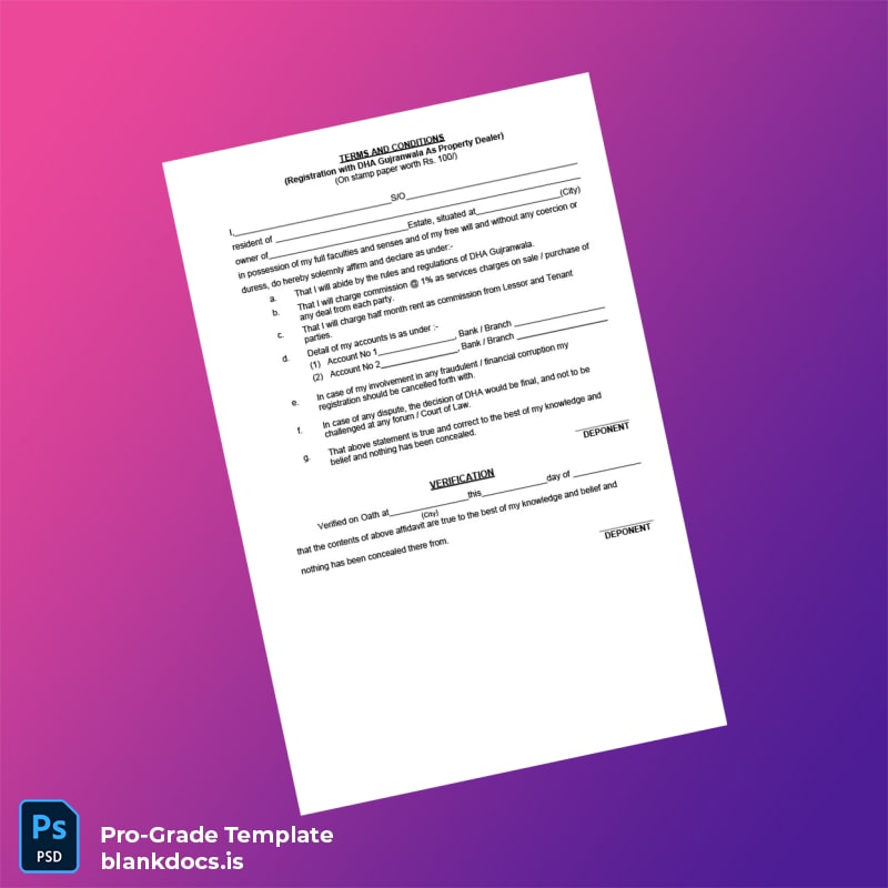 Be the first to review “Blank Pakistan DHA Gujranwala Registration Certificate Template (Word/PDF) 5 page”
