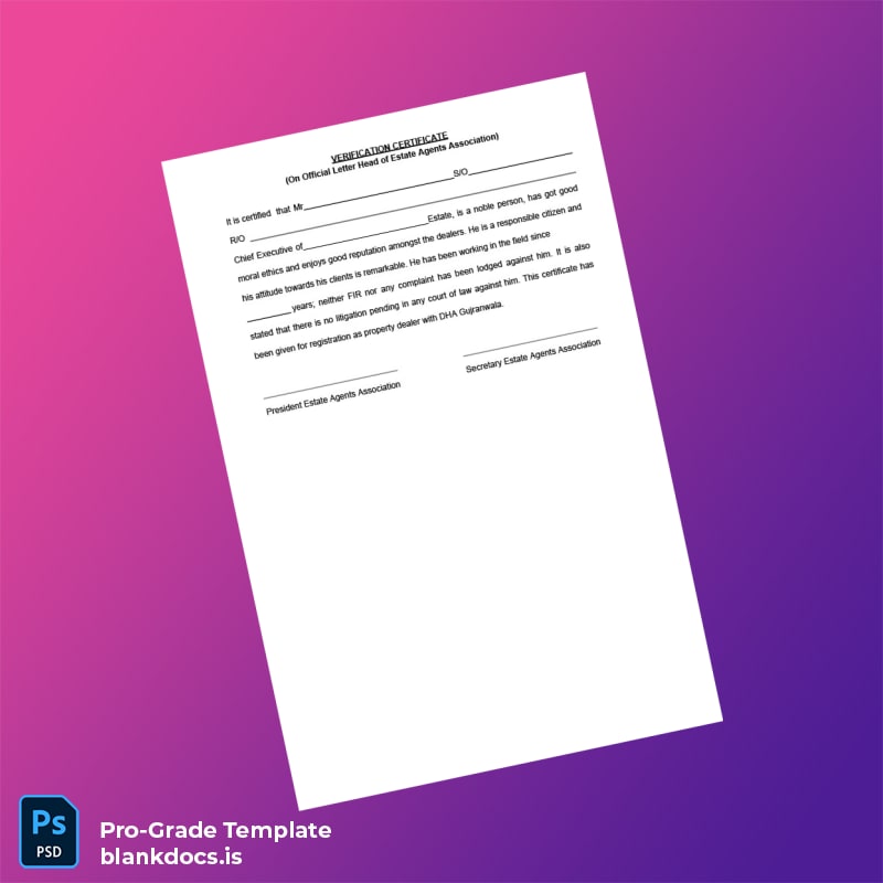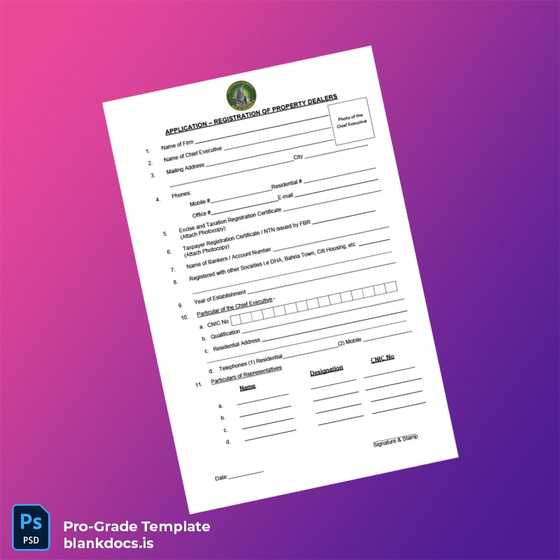 Streamline your business documentation process with our Blank Pakistan DHA Gujranwala Registration Certificate Word and PDF Template. Perfect for entrepreneurs, legal professionals, and administrative staff, this editable template provides a seamless way to create an official registration certificate tailored to your specific business needs.