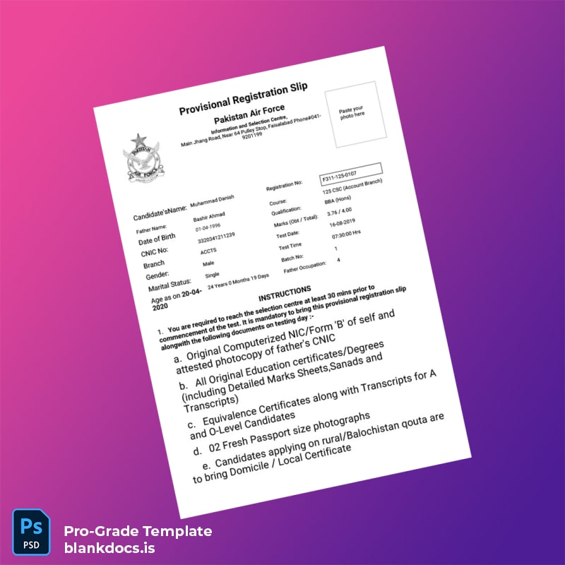 Professional Pakistan Provisional Registration Certificate Template in Word and PDF