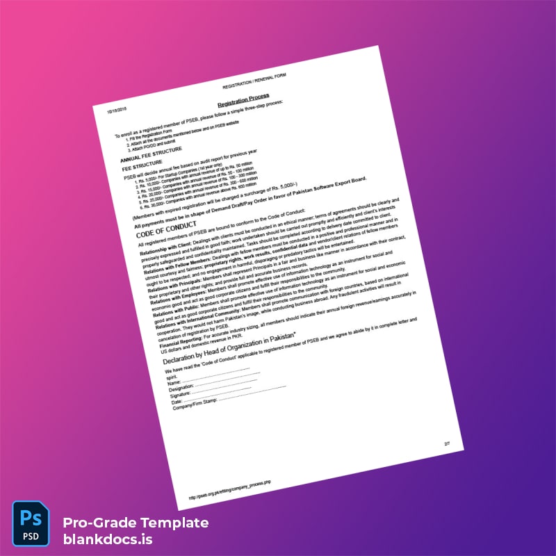 Blank Pakistan PSEB Registration Renewal Form Word and PDF Template for fast, easy editing and professional business registration renewal compliance.