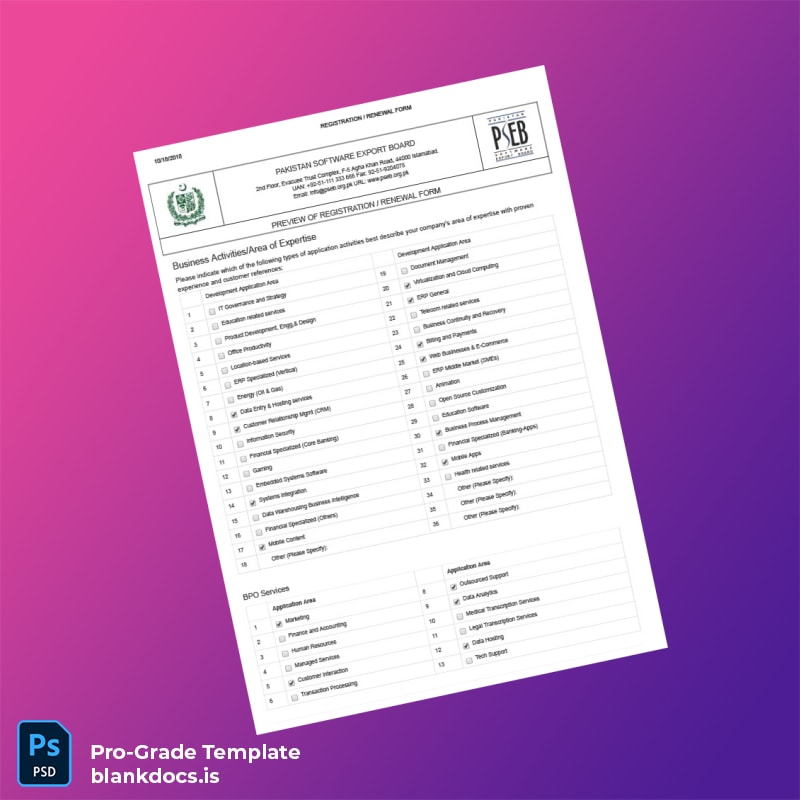 Be the first to review “Blank Pakistan PSEB Registration Renewal Form Template (Word/PDF) 7 page”