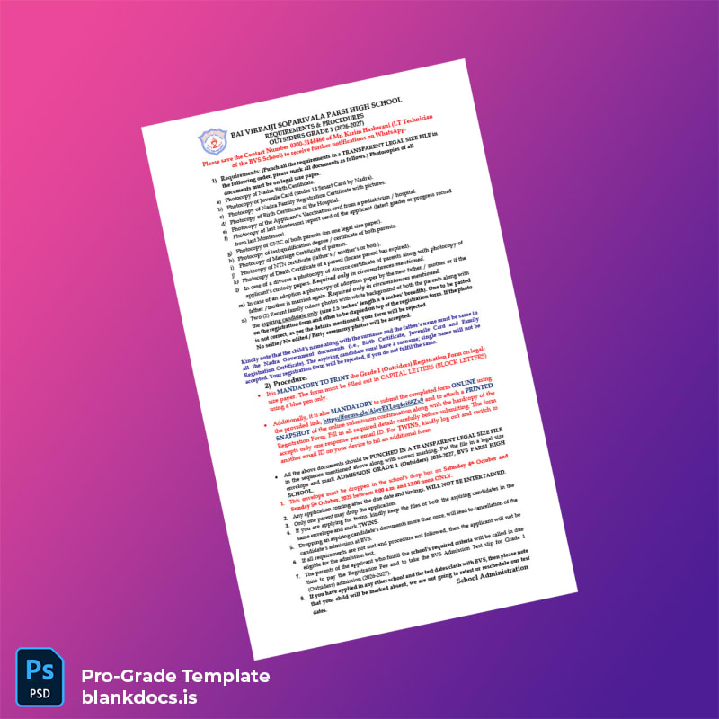The Blank Pakistan Registration Form for Grade 1 2026 1 Word and PDF Template offers a practical and professional solution for educators, school administrators, and parents requiring an editable and customizable registration certificate. Uniquely designed for 2026 admissions, this template ensures seamless data entry and quick form completion, eliminating the complexities associated with traditional paperwork.