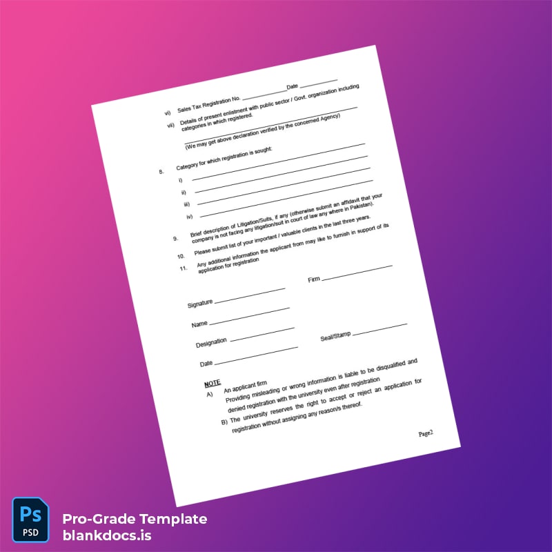 Get your hands on the Pakistan Sir Syed University of Engineering and Technology Business Registration Certificate Template in Word & PDF formats and experience streamlined documentation with professional precision. Enter all necessary information with ease and create an official document tailored to your needs. Don’t wait until you encounter delays—ensure your business paperwork is always ready. Purchase this editable, high-quality template now and maintain compliance confidently.