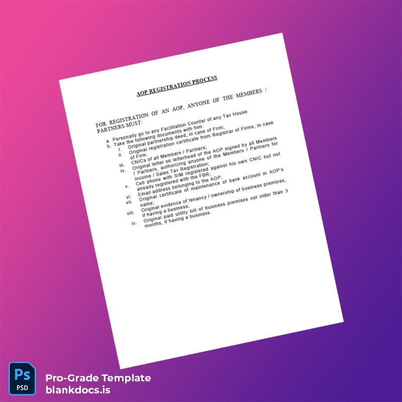 Efficiently Manage Your Business Registration with the Pakistan Tax Authority AOP Registration Certificate Template
