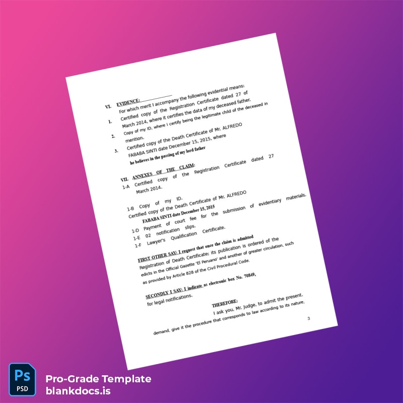 Imagine facing the urgency to register a death certificate for legal or administrative purposes. Many professionals and family members encounter delays due to incorrect or incomplete forms. By using this user-friendly template, you gain access to a fully customizable registration certificate template that eliminates guesswork and document errors, enabling a seamless submission to RENIEC.