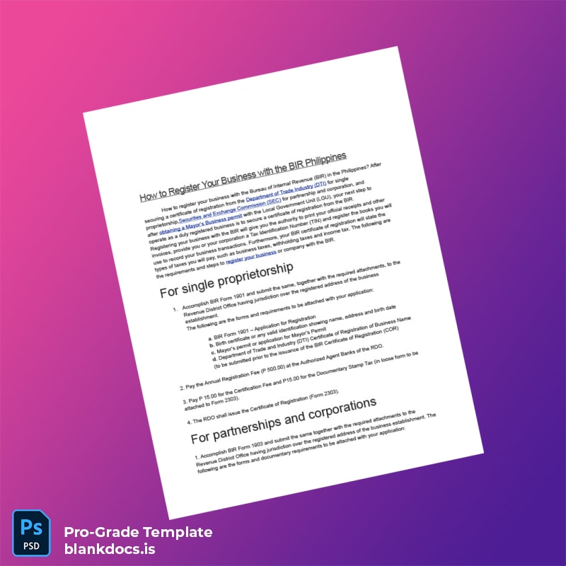 Be the first to review “Blank Philippines Bureau of Internal Revenue Registration Certificate Template (Word/PDF) 3 page”